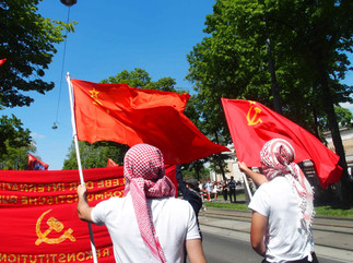 Auffallend waren auch die vergleichsweise vielen Sowjetfahnen, die am heurigen 1. Mai mitgetragen wurden. Damit verteidigten die Revolutionäre in Österreich, anlässlich des 80. Jahrestages der Befreiung vom Nazifaschismus, die herausragende Rolle der Sowjetunion und ihrer Roten Armee für die Befreiung vom Faschismus. In einer auf mehreren Demonstrationen in verschiedenen Städten gehaltenen Rede der Roten Fahne wurde betont, dass im 80 Jahr des Sieges über den Nazifaschismus der Zusammenschluss gegen Geschichtsverdrehungen, weitere Aufrüstung und Sparmaßnahmen notwendiger ist denn je - ein Anliegen das zahlreiche Teilnehmer der 1. Mai Demonstrationen teilen!