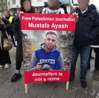 Die Kampagne für die Freilassung des politischen Gefangenen Mustafa Ayash wurde von zahlreichen solidarischen Kräften fest aufgegriffen und wird aus vielen Teilen Österreichs unterstützt. Die Bilder veranschaulichen auch wie eng die Forderung der Freilassung der Gefangenen und der gemeinsame Kampf gegen die Repression mit der Losung „Freiheit für Palästina“ verbunden ist.