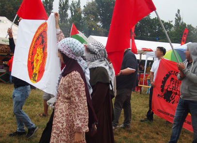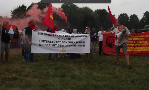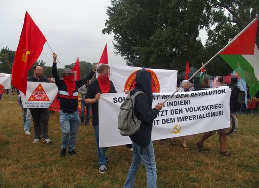 Mit einem Demonstrationszug in Solidarität mit der Revolution in Indien zogen Unterstützer der Roten Fahne, Aktivisten der Palästinasolidarität sowie auch Besucher und andere Initiativen und Organisationen durch die Initiativenstraße des Volksstimmefestes und stellten den proletarischen Internationalismus ins Zentrum.
