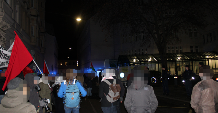 Zwölf Organisationen der Palästina-Solidaritätsbewegung hatten zur Kundgebung, die durch das Palästinakomitee Wien initiiert wurde, aufgerufen. Die zentrale Forderung: „Vereinigen wir uns gegen die Angriffe auf die Palästina-Solidaritätsbewegung und die demokratischen Rechte des Volkes!“ (LINK). In Redebeiträgen vom Palästinakomitee Wien, dem Arabischen Palästinaclub (APC), der Initiative Palästinasolidarität, Uni Wien for Palestine, Friends of the Filippino People in Struggle, der Freiheitsinitiative Politische Gefangene und Young Struggle wurde zum gemeinsamen Kampf gegen die Angriffe aufgerufen. Mit einem starken und kämpferischen Demonstrationszug vor die Strafanstalt Josefstadt bekam der Protest viel Aufmerksamkeit. Das große Polizeiaufgebot – wohl als Einschüchterung gedacht – heizte die Stimmung noch weiter an. Am Schluss der Kundgebung wurde angekündigt: „wir kommen wieder!“.