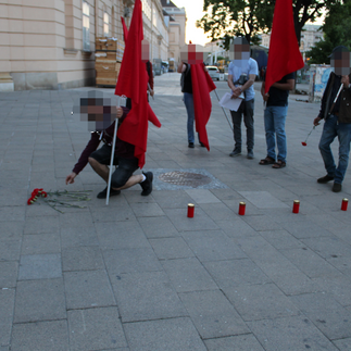 Mit roten Fahnen und Parolen wurde die internationale Solidarität zwischen den Völkern hochgehalten. Am Ende wurden rote Nelken für die Opfer am Denkmal am Platz der Menschenrechte niedergelegt.