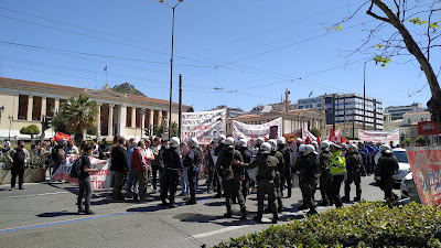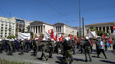 Am Samstag, den 9. April, riefen antiimperialistische Kräfte in Griechenland erneut zu einer Demonstration gegen den imperialistischen Krieg in der Ukraine auf. Diesmal war der Anlass der provokative Auftritt eines Ukrainischen Faschisten des Asow Bataillon zusammen mit dem Ukrainischen Präsidenten Selenski im griechischen Parlament.